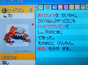 過ぎ去りし夜空をにぎわす羽根 ポケモン夢幻夜天 ハードマウンテンでの色違いヒードラン Lv 50をゲット